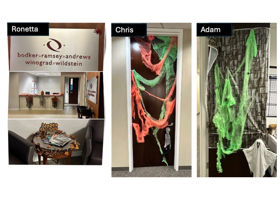 The halls of BRAWW Law looked a little different this week as plenty of creativity took over for our annual Halloween decorating contest! From spooky spider webs to scary ghosts, many of our doorways, cubicles, and offices showed off some serious Halloween spirit.
